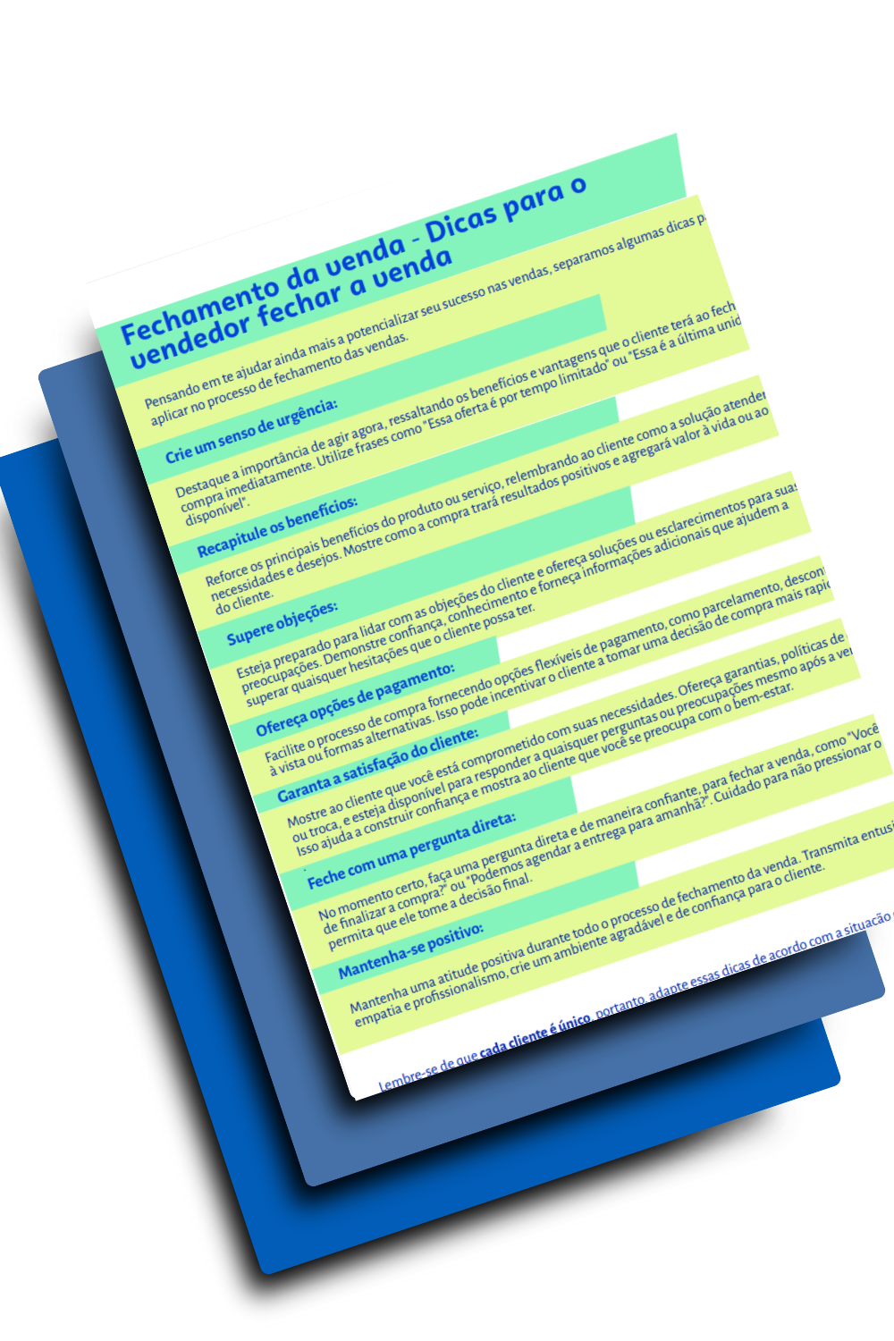 Algumas ações na hora de fechar uma venda com um cliente fazem a diferença para garantir o sucesso da interação, e conhecendo as estratégias para ”negociar” com o cliente, você aumenta suas vendas e satisfação dos seus consumidores.