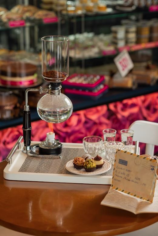 O sifão é o coração da experiência: elegante, curioso e surpreendente. Quando o fogo se acende, a mágica acontece e você vê o café sendo extraído como um ritual, uma verdadeira dança dos líquidos que encanta os sentidos. O brigadeiro completa o momento com doçura e aconchego. Para eternizar a experiência, a Adore Brigaderia oferece um cartão postal. Escreva, enderece e coloque na caixinha. Nós enviamos para quem você gostaria que estivesse aqui. O café desperta. O brigadeiro afaga. A carta eterniza.