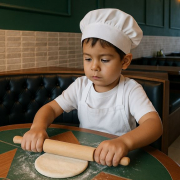 Um momento interativo onde as crianças viram mini chefs e montam a sua própria pizza