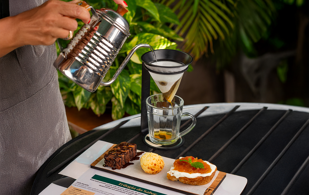 Aqui, o café não é apenas degustado. Ele é descoberto. A Trilogia do Sabor guia você por três formas de sentir: o aconchego da similaridade com brownie, o brilho do contraste com pão de queijo, e a surpresa da complementaridade com cream cheese, geleia de pimenta e hortelã. Cada combinação desperta algo diferente em você. E quando o momento termina, você leva um Drip Coffee para continuar essa história em casa.