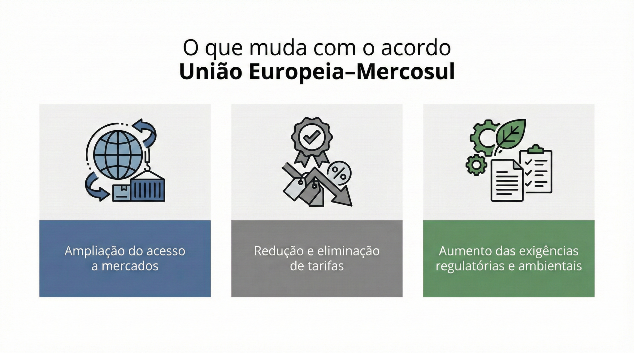 O acordo amplia o acesso a um mercado de alto poder aquisitivo, com impactos que vão além do agronegócio, alcançando também indústria, serviços e investimentos. Ao mesmo tempo, reforça um cenário de reorganização das cadeias produtivas globais, aumento da concorrência e maior rigor ambiental e regulatório. Nesse contexto, empresas que atuam de forma indireta como fornecedoras ou parceiras de cadeias exportadoras também passam a ter novas oportunidades.