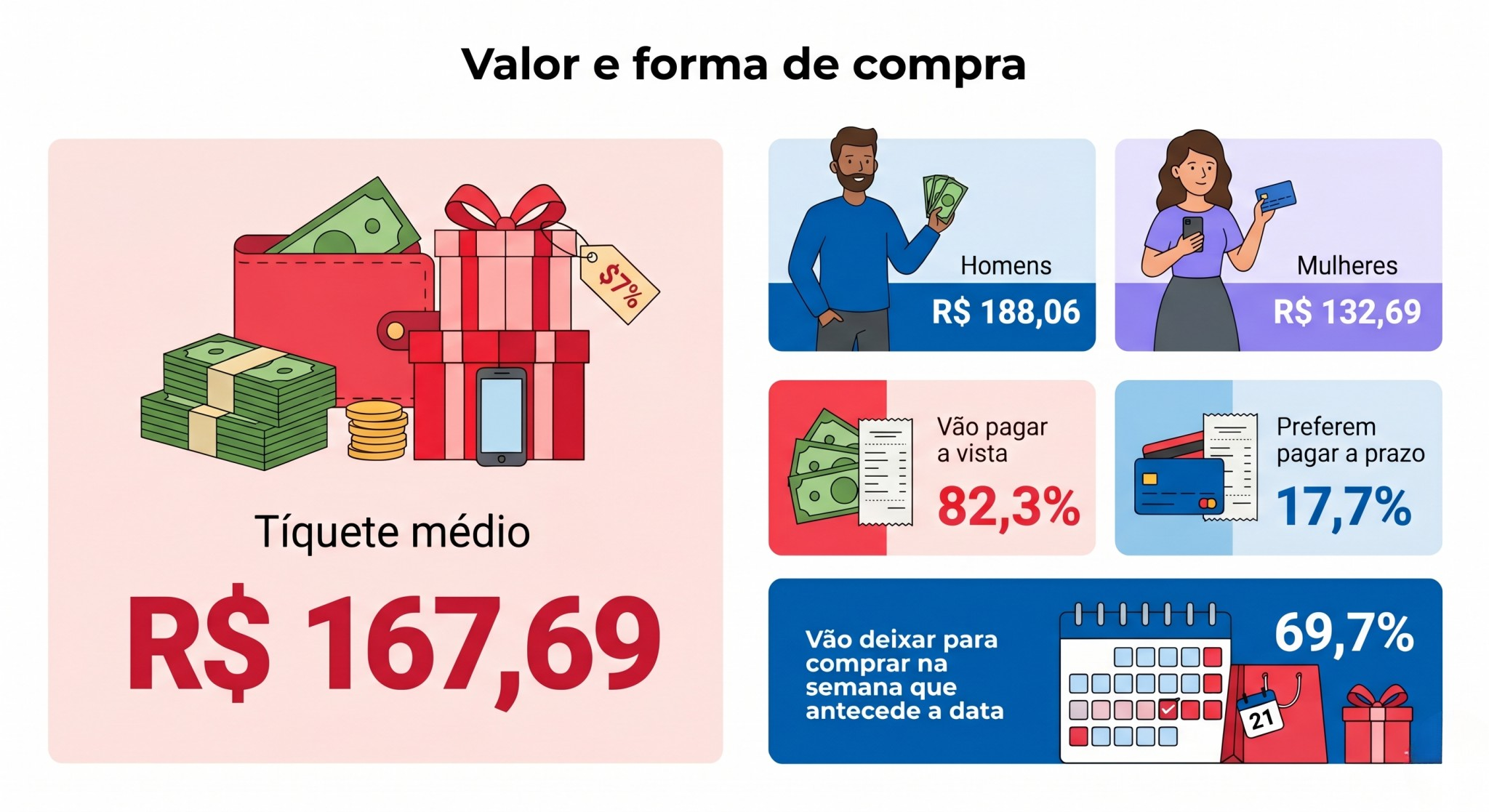 • Prepare uma campanha intensa para a última semana, com estoque separado, embalagens prontas e atendimento ágil para quem deixou a compra para perto da data.