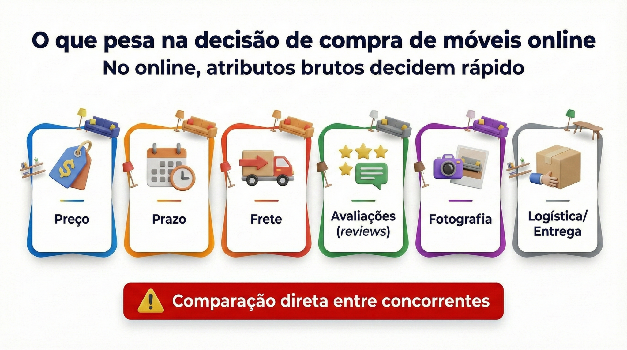 No online, preço é visível e a comparação é instantânea. Sem vendedor para “segurar a conversa”, o produto precisa se defender sozinho com fotografia, descrição, prazo, reputação e clareza de valor. O estudo também aponta que a concorrência aumentou muito: o que antes era terreno livre, hoje é disputa direta — e quem tenta competir com todo mundo geralmente cai na armadilha da guerra de preços, onde “vender muito” pode significar perder dinheiro.