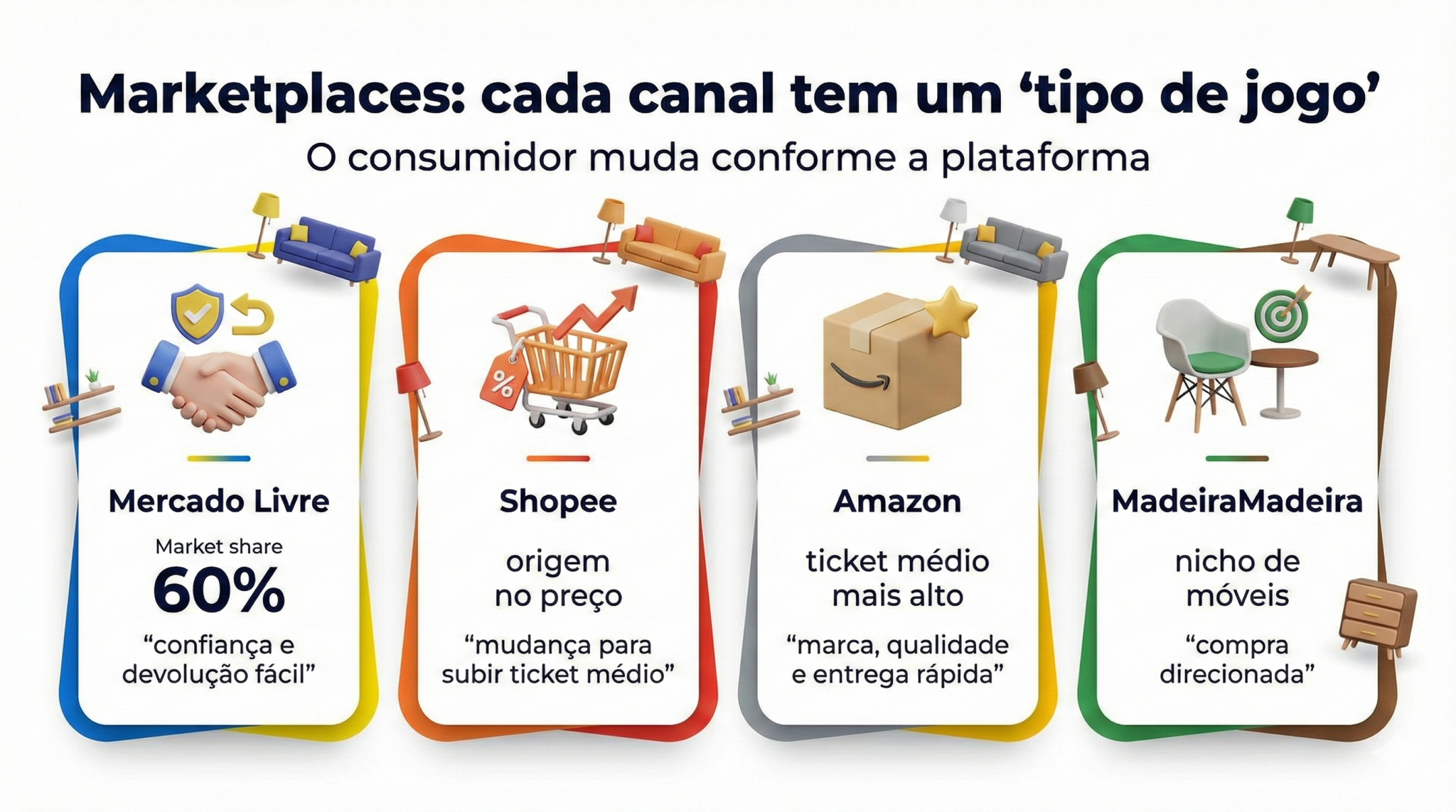 O e-commerce para móveis deixou de ser uma aposta e virou decisão estratégica. Só que a maioria entra achando que é “mais um canal” e descobre tarde demais que marketplace tem regra própria, algoritmo, cobrança por performance e um nível de concorrência que não perdoa improviso. Aqui, você entende como esse ecossistema funciona e o que separa quem escala de quem só se estressa.