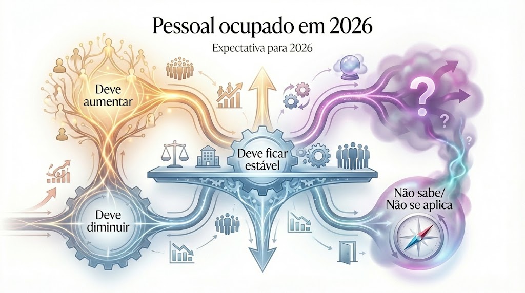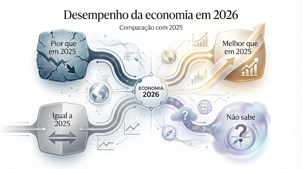Na avaliação sobre o desempenho da economia em 2026, parte relevante dos entrevistados acredita que o cenário será pior do que no ano anterior. Entre os pequenos negócios, há maior presença de otimismo e também mais incerteza. Já nas médias e grandes empresas, predomina uma visão mais negativa ou de estabilidade. Regionalmente, o Nordeste se destaca por uma percepção mais otimista, enquanto outras regiões demonstram maior cautela.