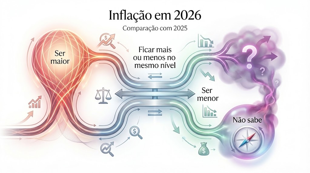 Quando o tema é inflação, a expectativa mais recorrente é de que fique no mesmo nível ou seja maior em relação ao ano anterior. Entre MEI e MPE, há percepção mais forte de pressão inflacionária, enquanto médias e grandes empresas tendem a esperar estabilidade. A expectativa de queda aparece como minoritária em todos os recortes analisados.