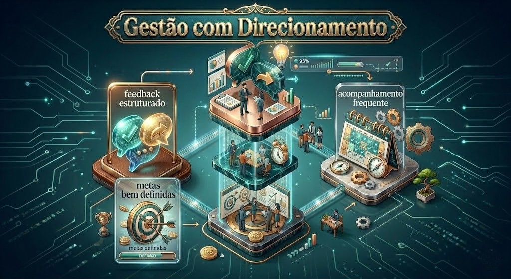 A gestão eficaz também exige processos claros. O arquivo destaca a importância de feedback estruturado, acompanhamento frequente e metas bem definidas como mecanismos que evitam desalinhamentos e fortalecem a confiança entre liderança e equipe. Não se trata de controle excessivo, mas de direcionamento consistente.