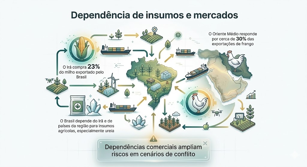 Outro fator sensível é a relação comercial com países da região. O Oriente Médio é um comprador importante de produtos do agro brasileiro e, em momentos de tensão internacional, mudanças políticas ou logísticas podem afetar fluxos comerciais. Para produtores e empresas do setor, isso significa acompanhar o cenário internacional com mais atenção e avaliar alternativas de mercado e estratégias de comercialização.