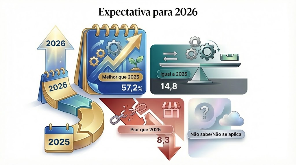 Quando o olhar se volta para o próximo ano, o sentimento predominante é de otimismo. A maior parte dos microempreendedores acredita em um cenário melhor, ainda que exista uma parcela que demonstra incerteza ou projeta continuidade do contexto atual.