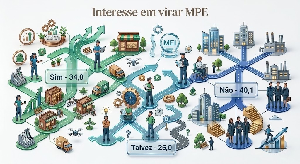 Crescer é um desejo comum entre quem empreende, mas a decisão de transformar um negócio em micro ou pequena empresa envolve muito mais do que vontade. A sondagem mostra um cenário marcado por cautela: existe interesse em evoluir, porém a decisão costuma vir acompanhada de dúvidas sobre o momento certo, a estabilidade do negócio e os impactos da mudança na rotina empresarial.