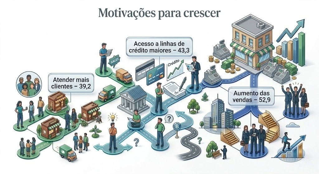 Entre os empreendedores que consideram essa evolução, a motivação está ligada principalmente à possibilidade de expandir o negócio. O movimento de crescimento aparece associado a oportunidades como vender mais, atender novos clientes e acessar recursos que hoje são mais limitados. Em muitos casos, o interesse em avançar de categoria surge quando o empreendedor percebe que o modelo atual começa a restringir o potencial de desenvolvimento da empresa.