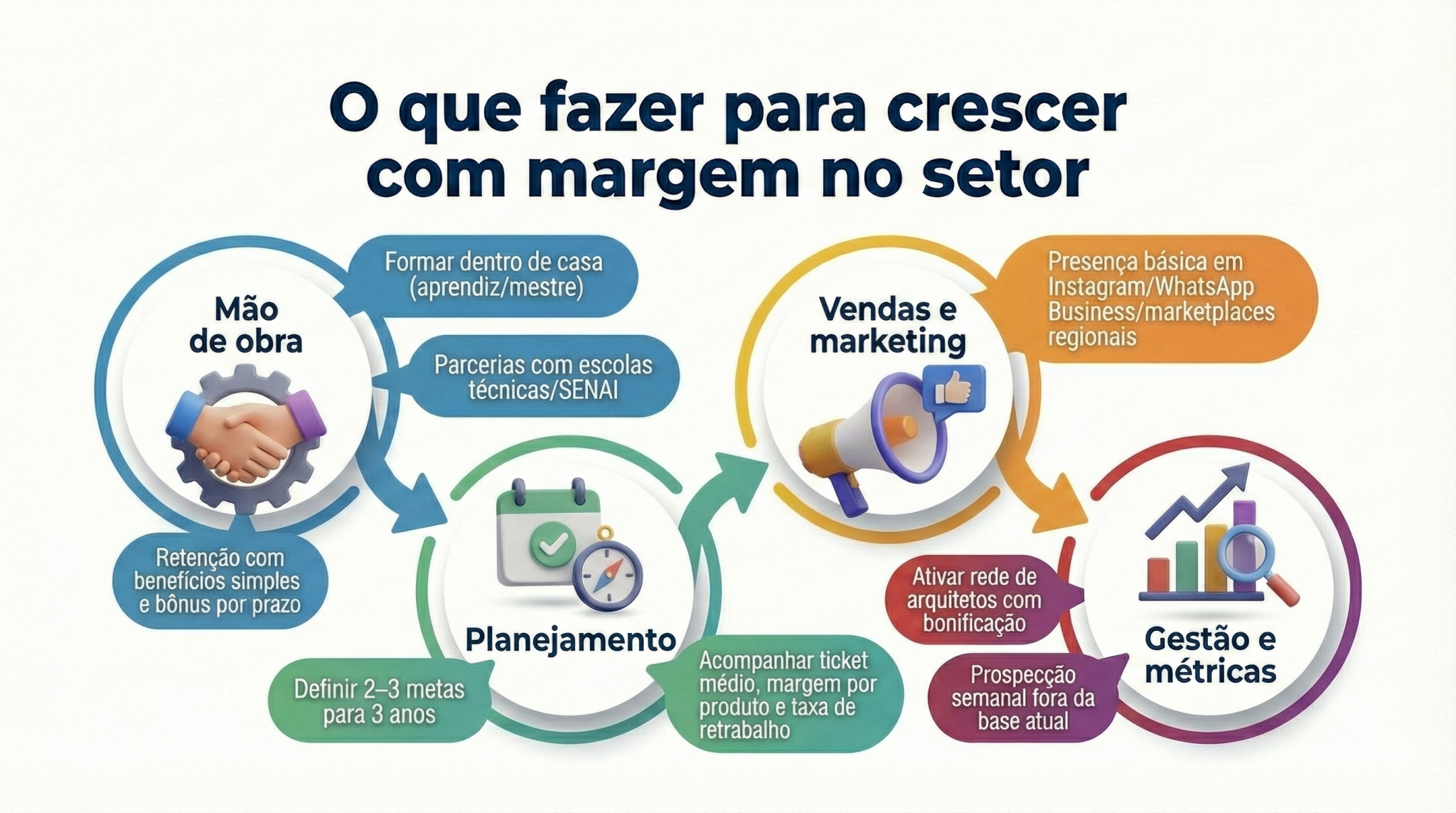 📌 Medir o básico todo mês: ticket médio, margem por produto e taxa de retrabalho (sem isso, é chute)