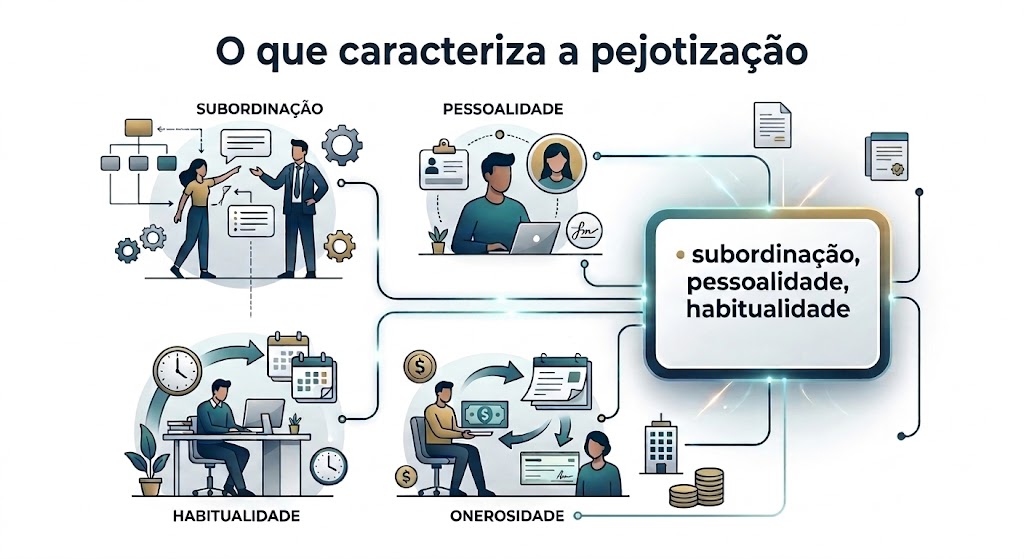 A pejotização acontece quando um profissional é contratado como Pessoa Jurídica, mas, na prática, a relação apresenta características típicas de emprego. A legislação trabalhista considera nulos contratos feitos para fraudar direitos, aplicando o princípio da primazia da realidade. Ou seja, não importa apenas o que está no papel, mas como a relação funciona no dia a dia.